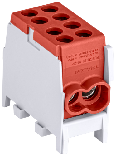 Złączka kompaktowa na szynę, czerwona 2.5-25mm2, max. 1000VAC/DC, max.101A FLECU-25-16-2P Tracon Electric