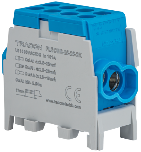 Złączka kompaktowa na szynę, niebieska 2.5-25mm2, max. 1000VAC/DC, max.101A FLECU-25-25-2K Tracon Electric