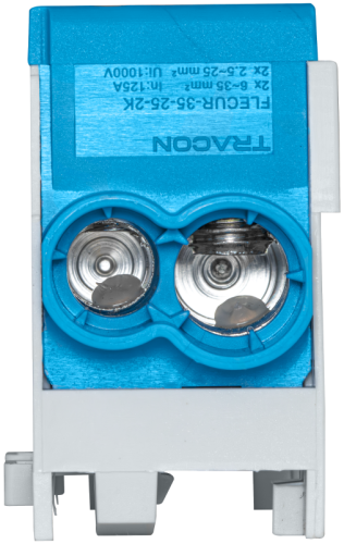 Złączka kompaktowa na szynę, niebieska (certyfik. węgierski) 6-35mm2, max. 1000VAC/DC, max.125A FLECUR-35-25-2K Tracon Electric
