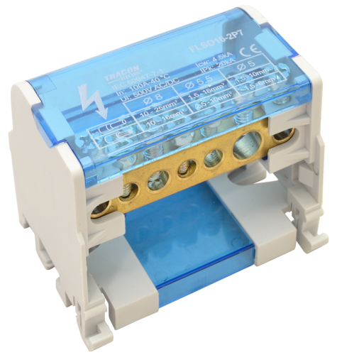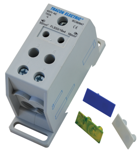Złączka odgałęźna na szynę, 1×50mm2 / 4×16mm2, 400VAC, 150A, MULTICOLOR FLS50/16X4 Tracon Electric