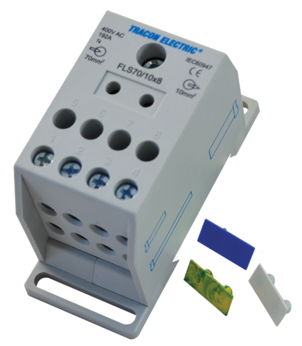 Złączka odgałęźna na szynę 1×70mm2 / 8×10mm2, 400VAC, 192A, MULTICOLOR FLS70/10X8 Tracon Electric