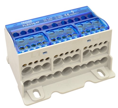 Złączka odgałęźna na szynę 1×35mm2 / 4×10mm2, 400VAC, 125A, MULTICOLOR FLS35/10X4 Tracon Electric