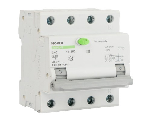 Wyłącznik różnicowoprądowy z członem nadprądowym, Icn=6kA, 3+Nbieg, char. C, In=40A, IΔn=30mA, type AC Ex9NL-N 3P+N C40 30mA EU 111518 Noark różnicówka z zabezpieczeniem RCBO
