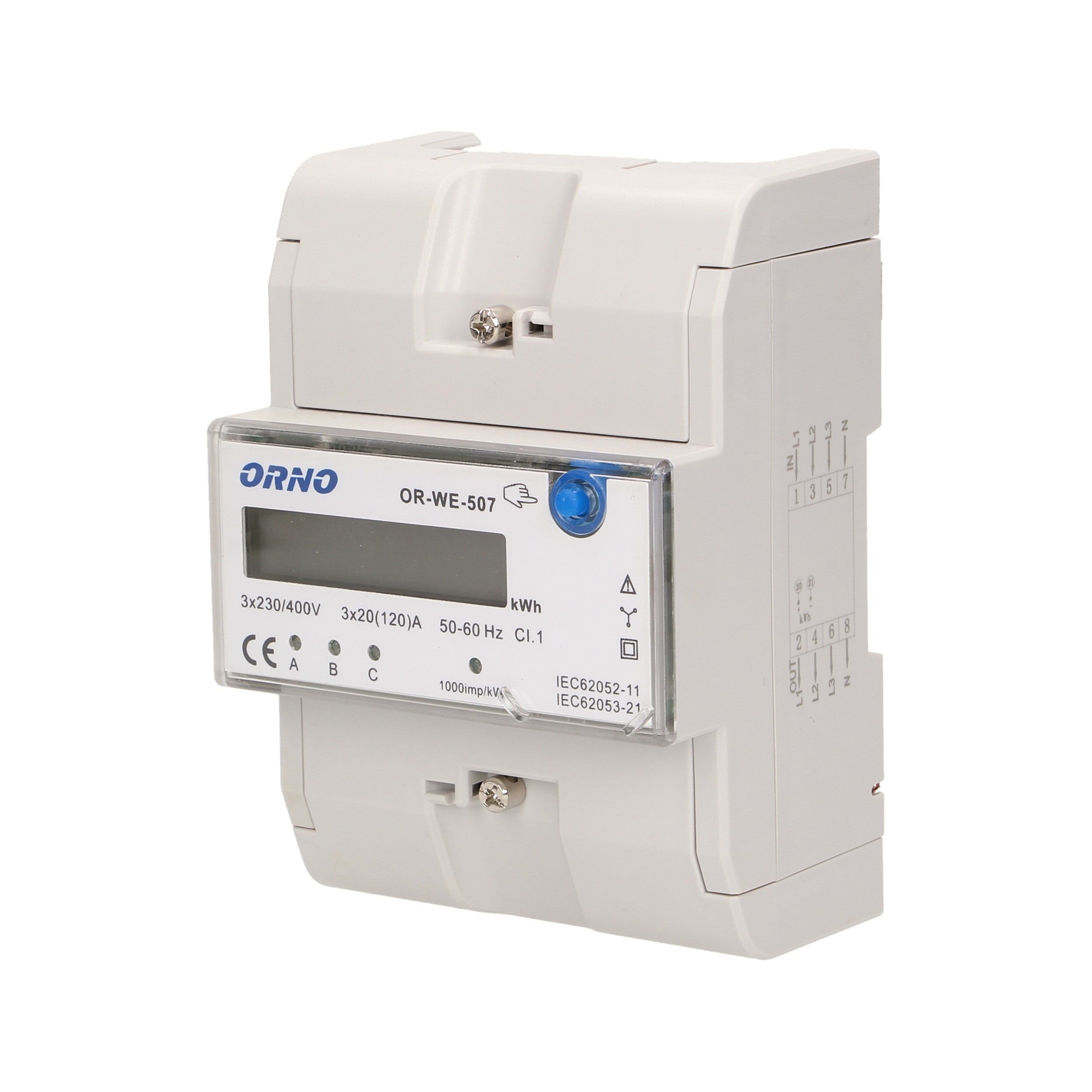 3-fazowy wskaźnik energii elektrycznej, 120A, 5 modułów, DIN TH-35mm, dodatkowy przycisk OR-WE-507 ORNO