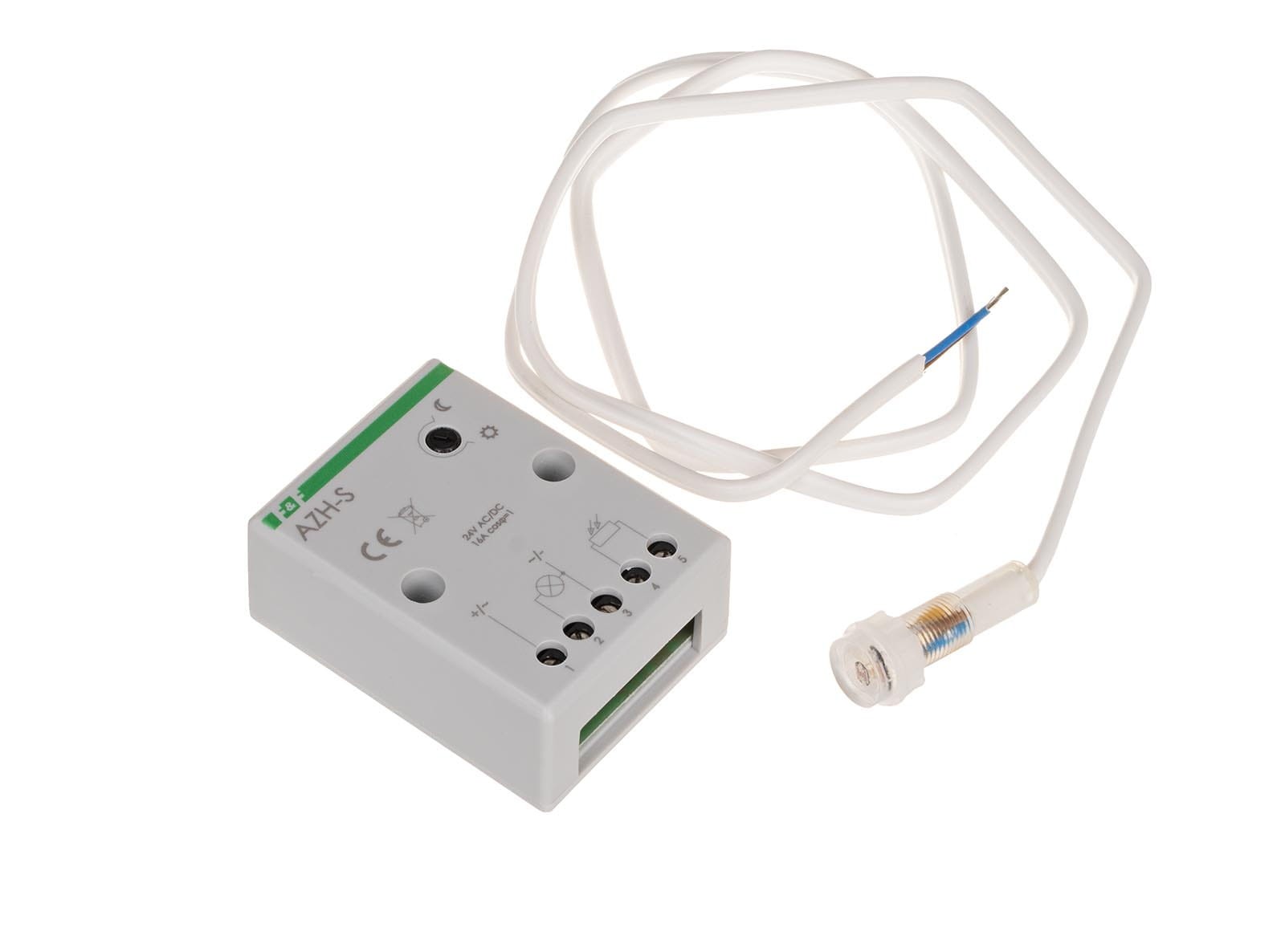 AZH-S-24V to automat zmierzchowy firmy F&F, zaprojektowany do automatycznego sterowania oświetleniem (lub innymi odbiornikami) w zależności od natężenia światła dziennego. Jest to wariant przystosowany do instalacji niskiego napięcia 24 V AC/DC, często stosowany w systemach sterowania przemysłowego, oświetleniu awaryjnym, instalacjach fotowoltaicznych lub systemach 24 V DC/AC.