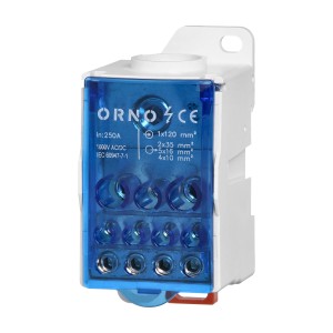 Blok rozdzielczy 250A, zacisk wejściowy 1x120mm², zaciski wyjściowe 4x10 i 5x16 i 2x25mm² OR-LZ-8207/250 ORNO