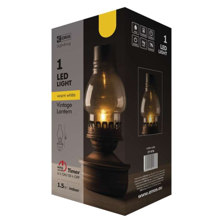 Dekoracja Lampion LED Vintage 28cm 3x AA WW Timer ZY1978 Emos IP20 1,5W stara lampa ciepły biały