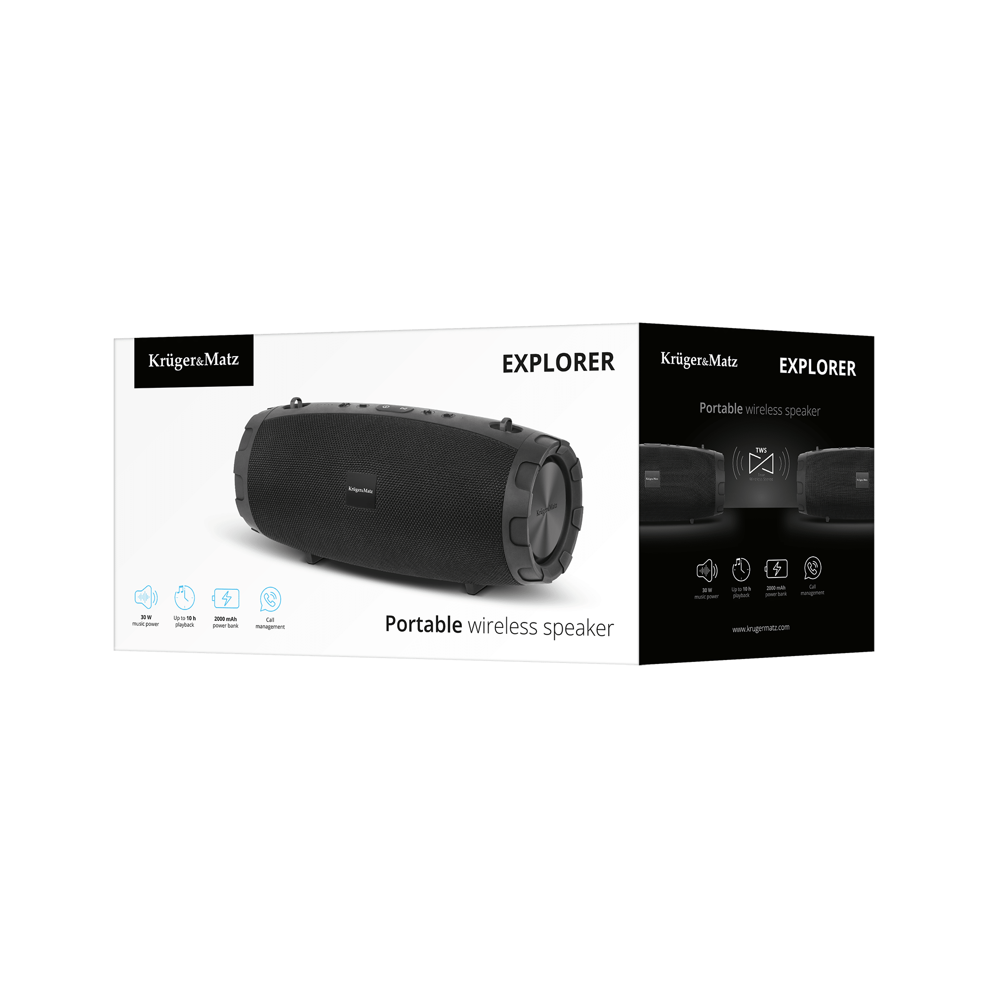Nie możesz się zdecydować jaki głośnik Bluetooth wybrać? Kruger&Matz Explorer to urządzenie, które sprawdzi się w każdej sytuacji – idealny do domu, na imprezę w plenerze, a dzięki dołączonemu paskowi, będzie także doskonałym towarzyszem podczas spaceru. Ten głośnik bezprzewodowy Bluetooth został wyposażony w trzy przetworniki – niskotonowy i dwa wysokotonowe - które pozwalają odtwarzać muzykę w paśmie przenoszenia 60 Hz ~ 20 kHz. Z kolei wykorzystana w Explorer technologia Bluetooth 5.0 gwarantuje stabilne połączenie oraz niski pobór energii.