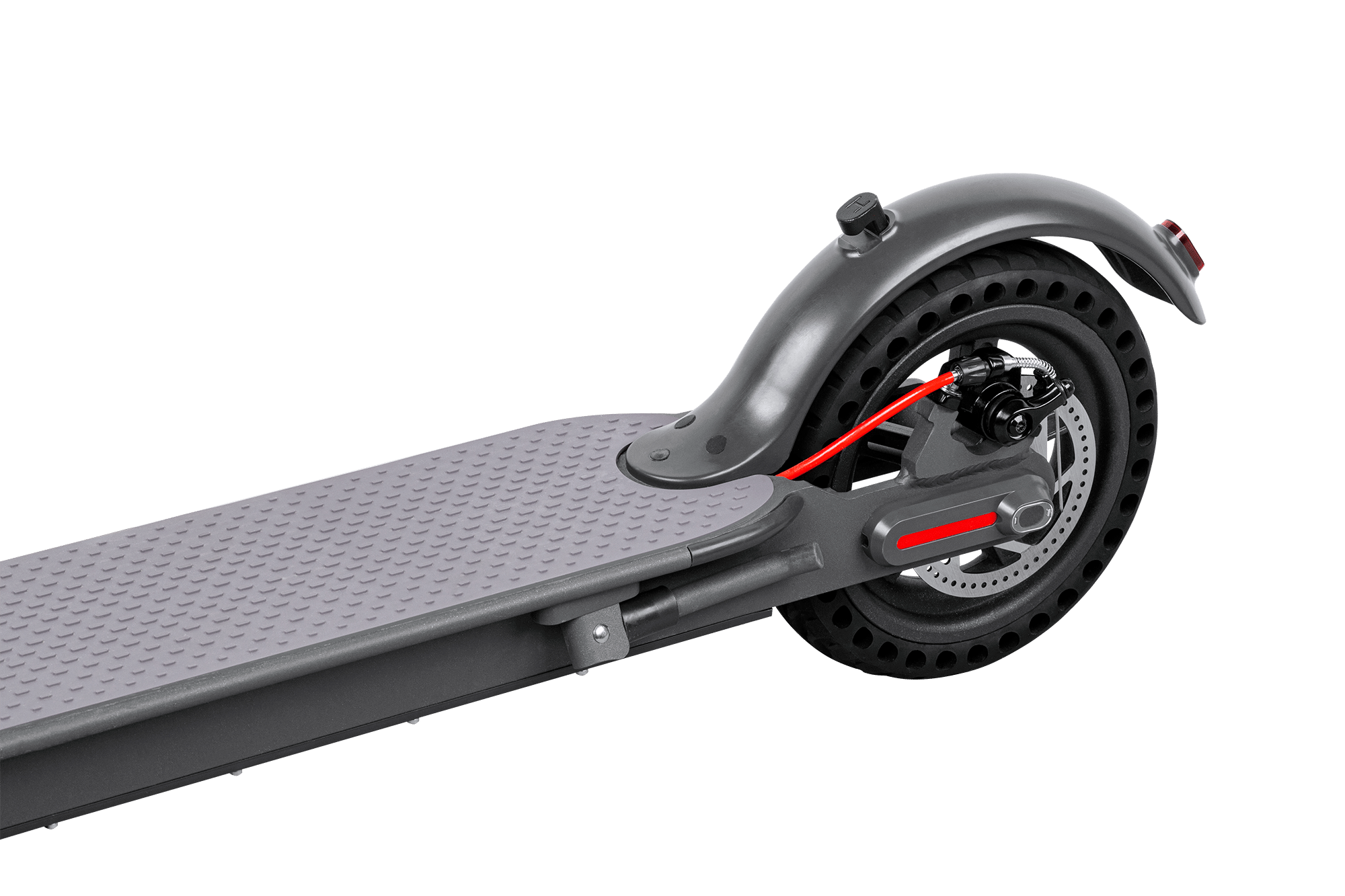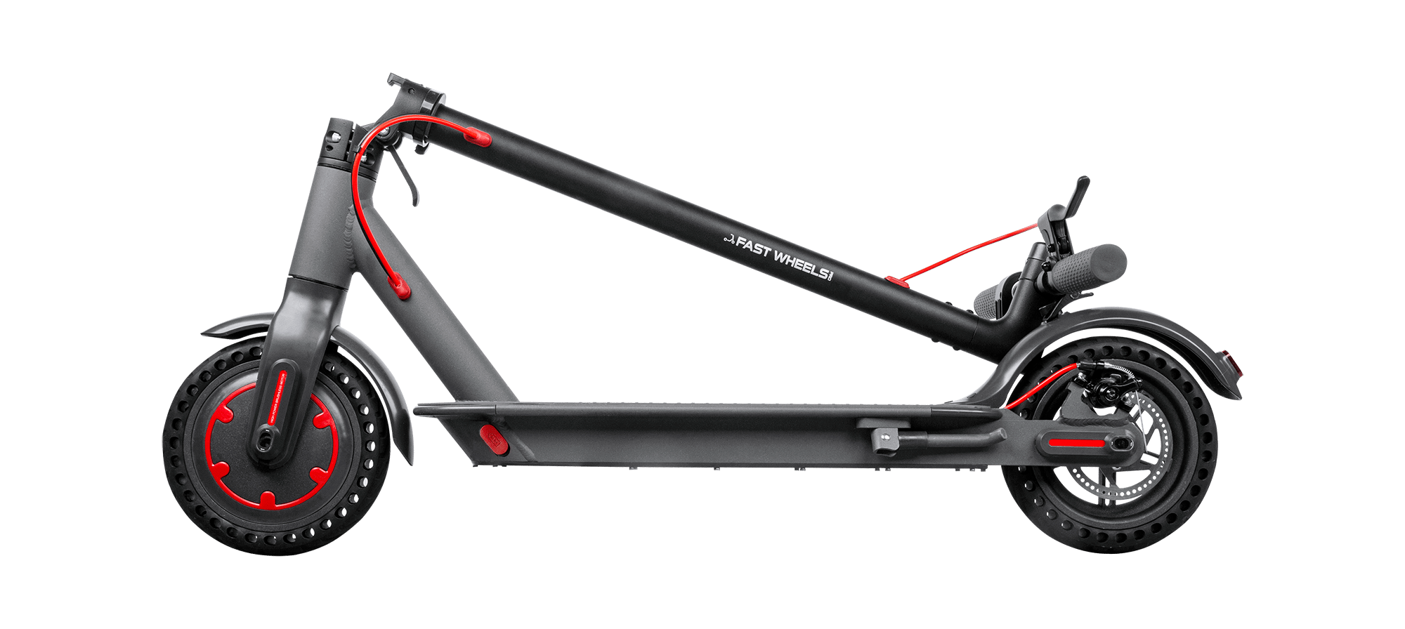 Fast Wheels PRO to nie tylko wysoki komfort jazdy, ale także bezpieczeństwo. Dzięki dwóm reflektorom – z przodu i z tyłu urządzenia – jadąc hulajnogą, będziesz zawsze dobrze widoczny na drodze, także po zmroku.