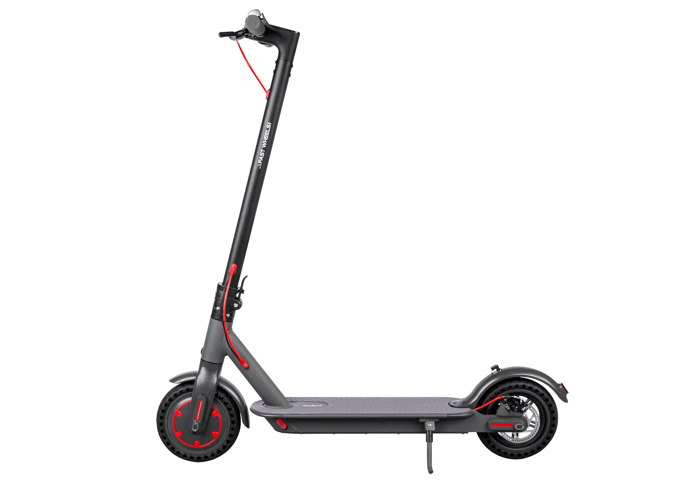 Fast Wheels PRO posiada wbudowany licznik prędkości oraz wskaźnik naładowania baterii, które włączają się automatycznie po uruchomieniu hulajnogi. Aby zwiększyć komfort i bezpieczeństwo podczas jazdy, przy kierownicy znalazło się także miejsce na dzwonek.