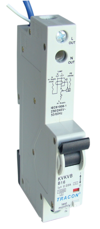 Kombinowany wyłącznik ochronny, 2P, 1 mod, char. B 25A, 30mA, 10kA, AC, E3 KVKVB-25/03 Tracon Electric