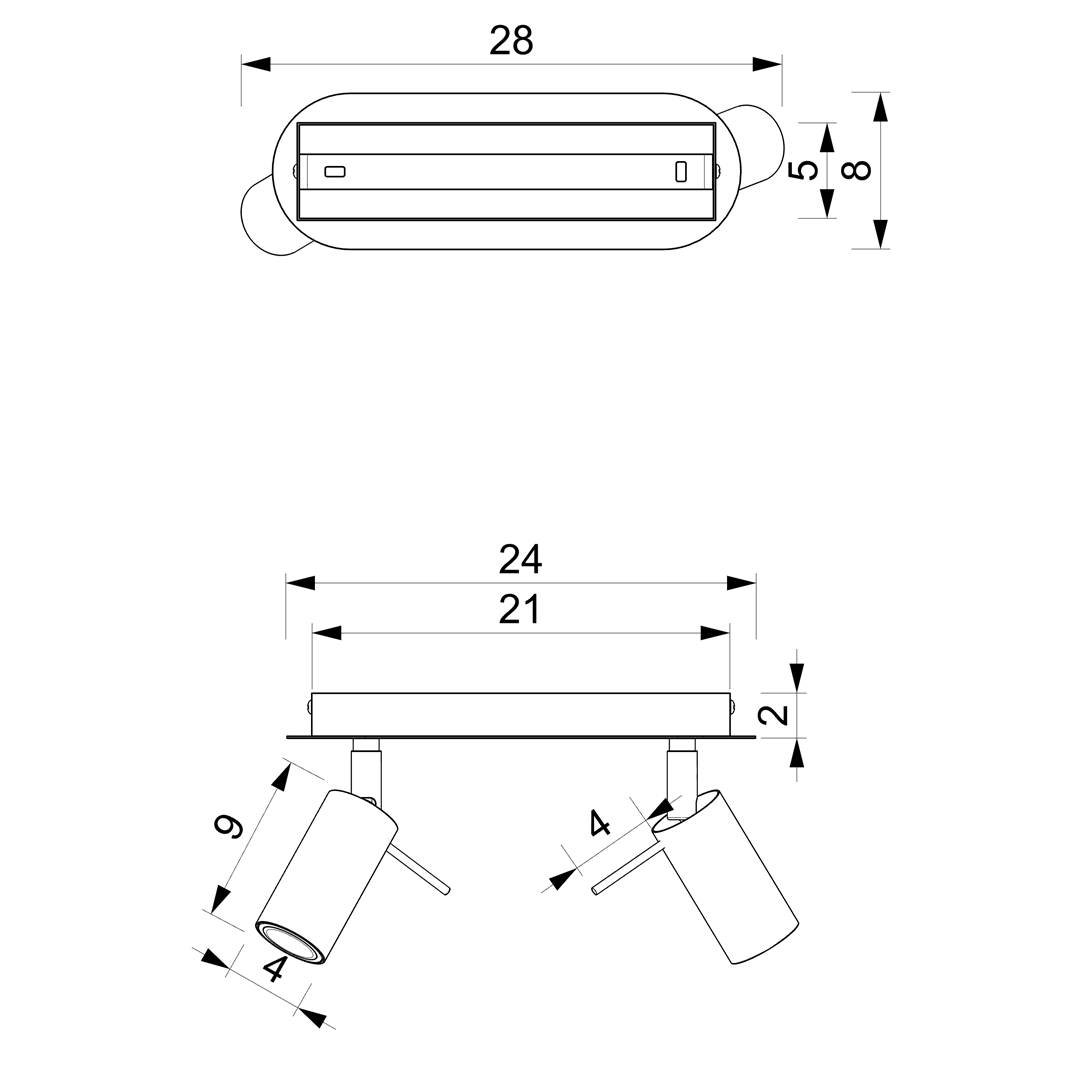 • Lampa sufitowa w czarnym kolorze z dwoma źródłami światła MLP7619