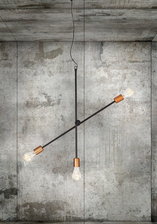 Lampa sufitowa wisząca Industrialna Loft STICKS III 6268 NOWODVORSKI Lighting E27 x3 nowoczesna oprawa oświetleniowa żyrandol metalowa nad stół blat wyspę czarno-złota czarno-złoty mosiądz zwis Inspiracje Premium
