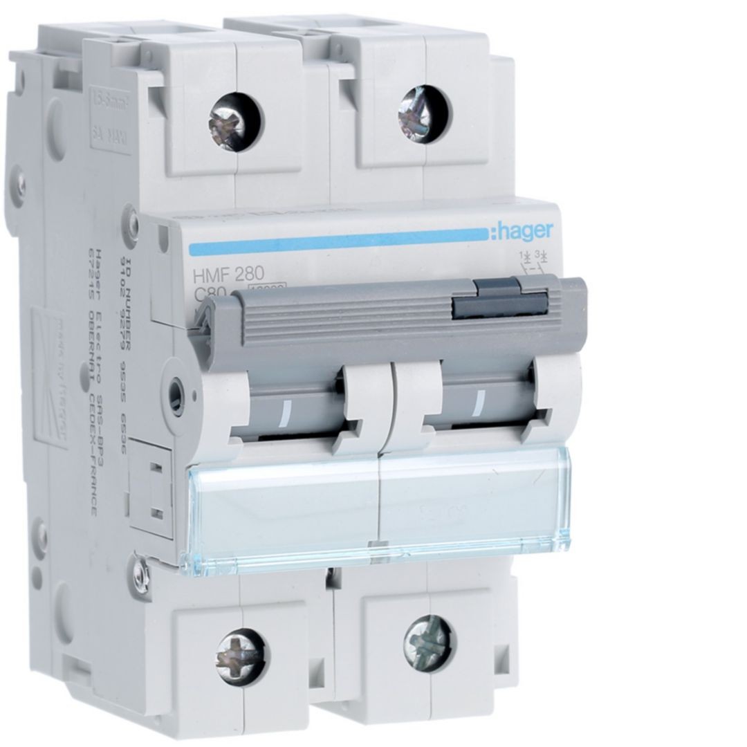 MCB Wyłącznik nadprądowy Icn=10000A / Icu=10kA 2P C 80A HMF280 Hager