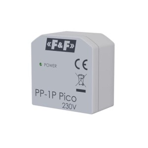 PP-1P-Pico to miniaturowy, jednokanałowy przekaźnik bistabilny (impulsowy), zaprojektowany do montażu podtynkowego w najmniejszych przestrzeniach, takich jak głębokie puszki instalacyjne (Ø 60 mm) lub bezpośrednio za łącznikiem. Umożliwia sterowanie oświetleniem lub innymi urządzeniami z wielu punktów za pomocą przycisków monostabilnych (dzwonkowych). Jest to wersja zasilana napięciem sieciowym, wyróżniająca się stykiem przełącznym (1P).