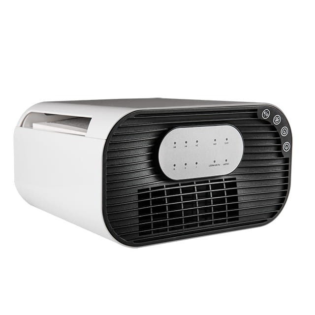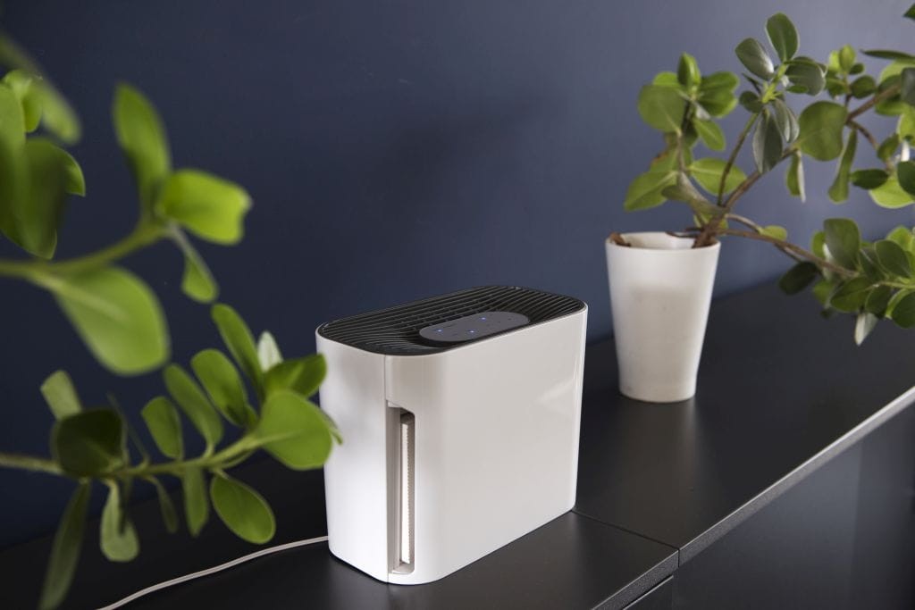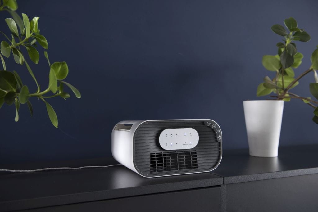 Oczyszczacz PURIE ma wymiary 19 x 25 x 13,8 cm i sprawdzi się w niewielkich pomieszczeniach - wskaźnik emisji czystego powietrza to 42m3/h.