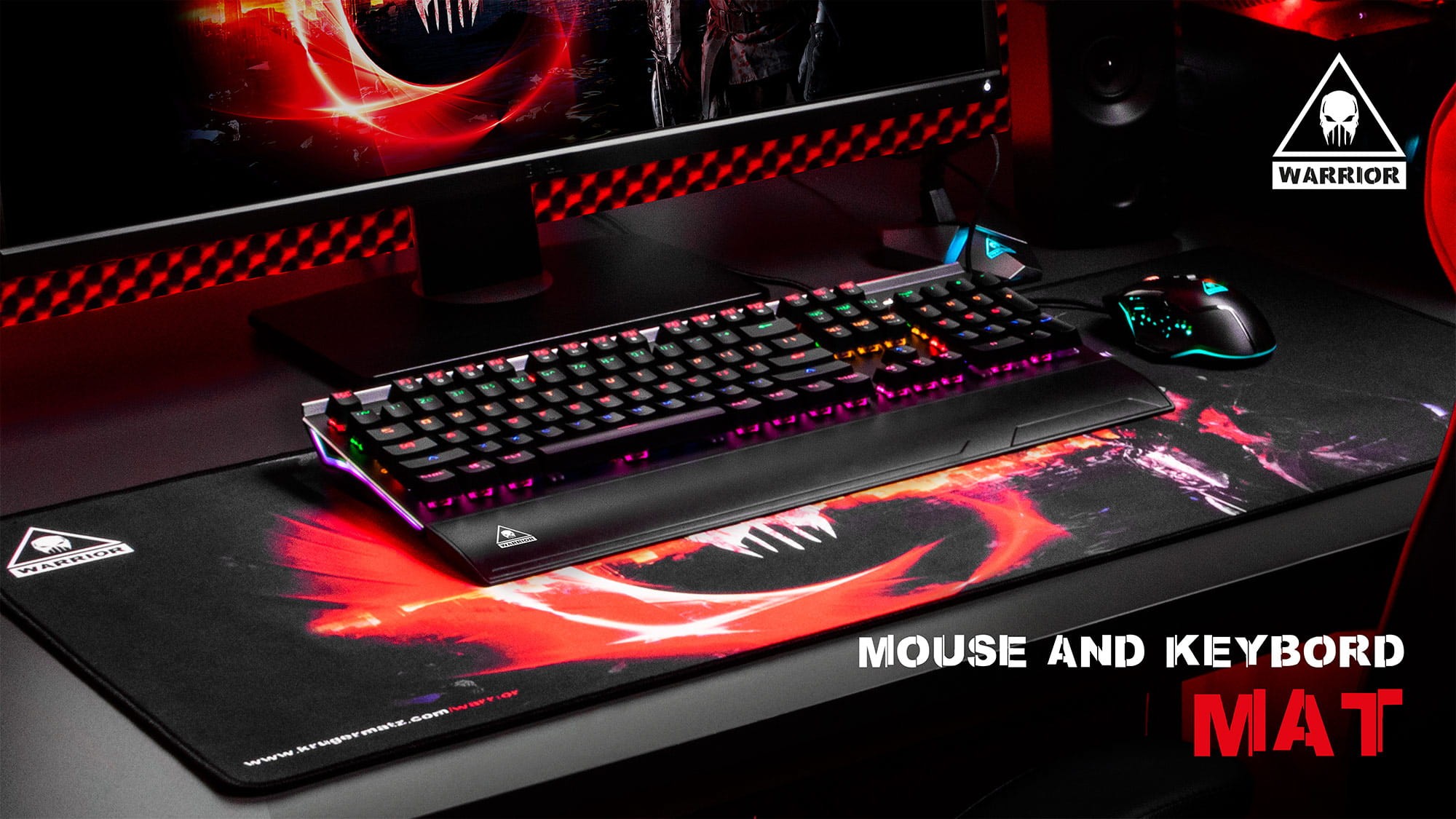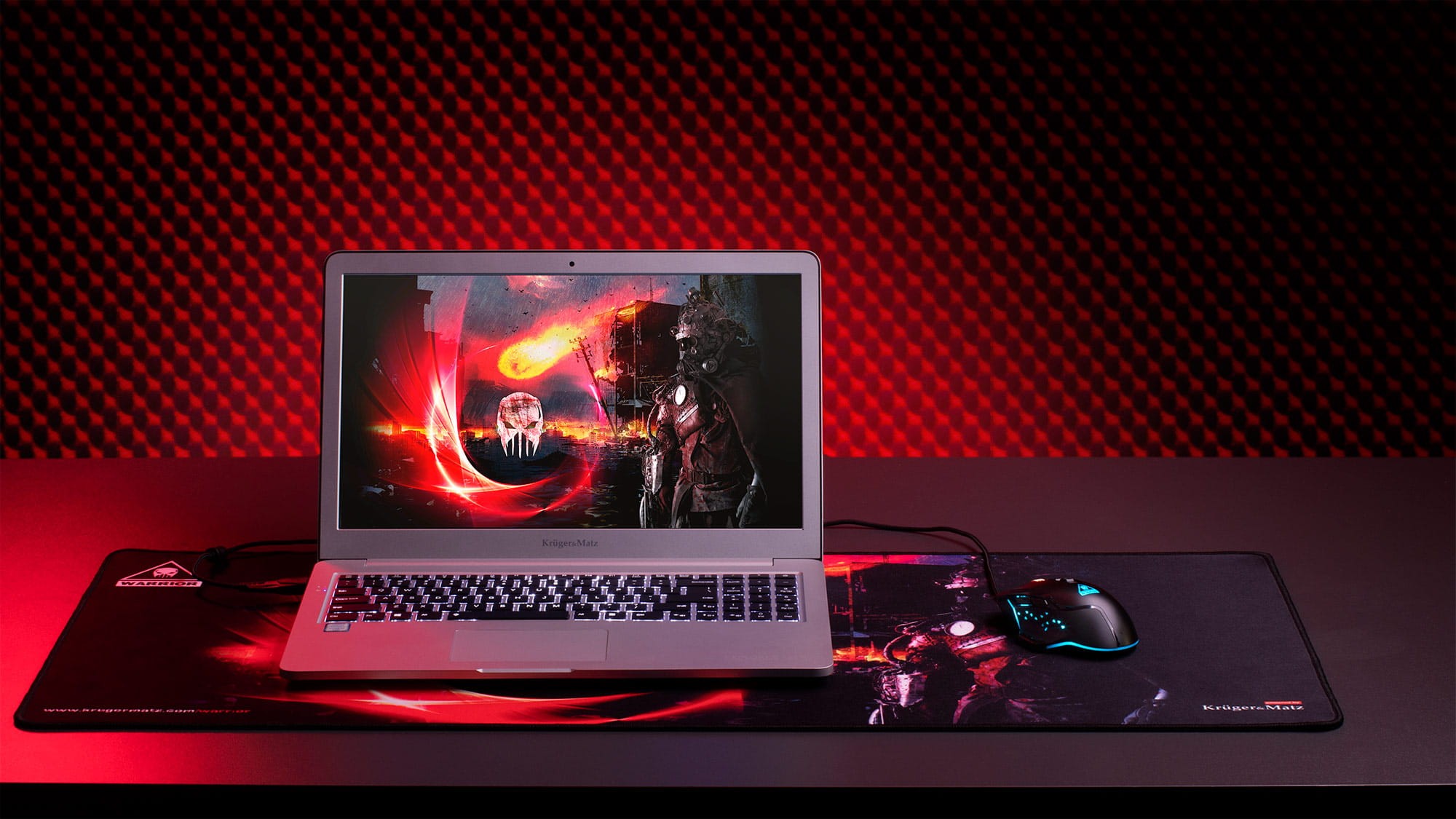 Podkładka pod mysz i klawiaturę Kruger&Matz Warrior wykonana została z multispandexu, czyli specjalnego materiału, który zapewnia graczom pełną kontrolę i płynne sterowanie zarówno myszą optyczną, jak też laserową.