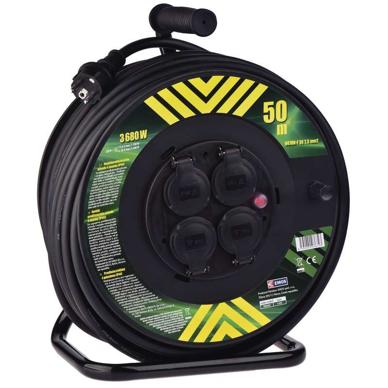 Przedłużacz bębnowy otwarty 4 gniazda 50m zwijany 3x2,5 IP44 P084503 Emos
