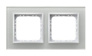 Ramka wykonana z białego szkła z białą plastikową ramką wewnętrzną z serii Impresja Prestige kompatybilna z elementami z serii Impresja.
