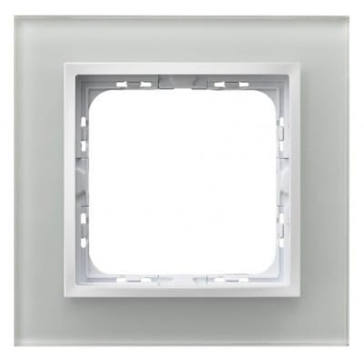 Ramka wykonana z białego szkła z białą plastikową ramką wewnętrzną z serii Impresja Prestige kompatybilna z elementami z serii Impresja.