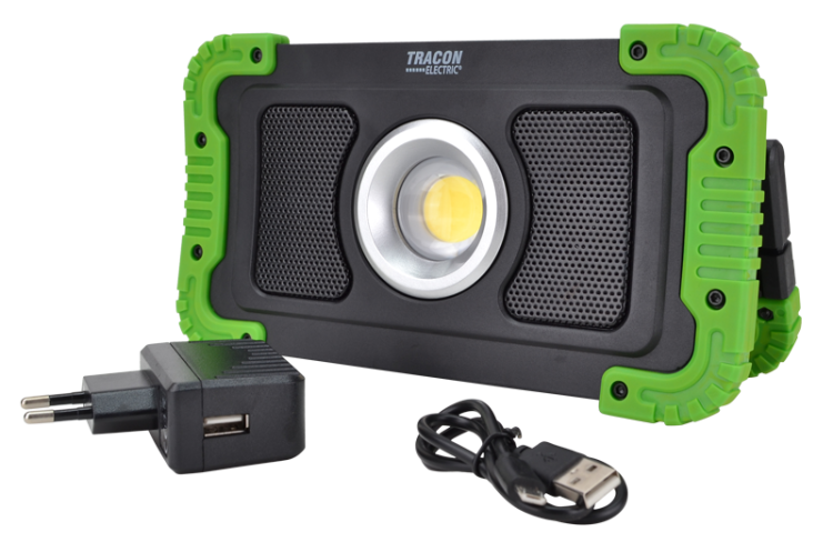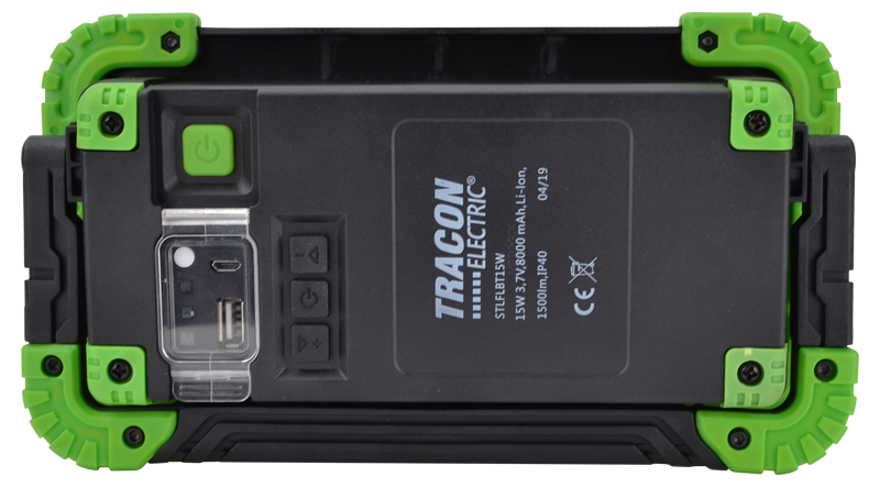 Reflektor montażowy LED z głośnikiem bluetooth 15W, 6000K, 3,7V, 8000mAh, Li-Ion, 1500lm, 4-10 h, IP40 STLFLBT15W Tracon Electric
