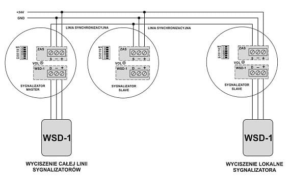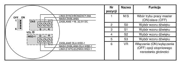 - Współpracuje z wyłącznikiem sygnału dźwiękowego WSD-1