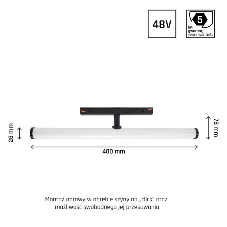 System SHIFT SMART- BEAM regulowana 28x400x75mm 12W 150st czarny CCT/DIM 5 Lat Gwarancji WLD+40007_SMART WOJNAROWSKI Lighting