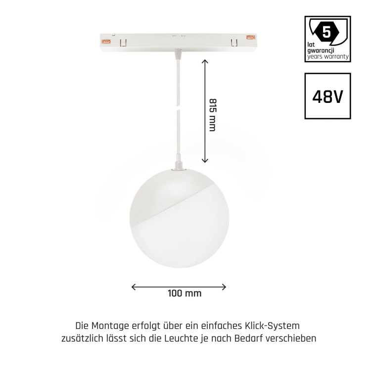 System SHIFT SMART- GLOBE P Oprawa Kula Zwis fi100 (815mm kabel) 5W 165st biała CCT/DIM 5 Lat Gwarancji. WLD+40034_SMART WOJNAROWSKI Lighting