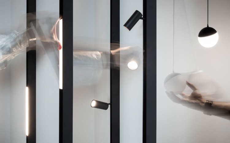 System SHIFT Wojnarowski Lighting to autorski system oświetlenia, którego bazą jest szynoprzewód 48 V, uzupełniony oprawami liniowymi, reflektorami i lampami wiszącymi.