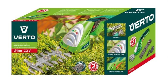 Trymer Nożyce Akumulatorowe do trawy i żywopłotu 7.2V Li-Ion 1,3Ah 52G311 Verto ogrodnicze