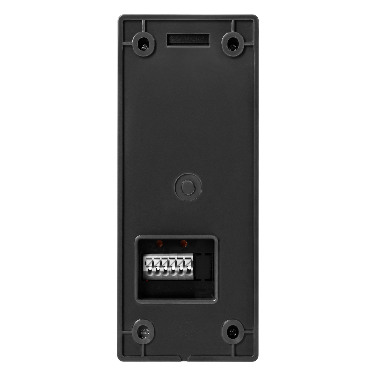 Panel zewnętrzny o wymiarach 64x153 mm wykonany jest z aluminium i posiada osłonę przeciwdeszczową. Stopień ochrony IP44 daje poczucie spokoju o wytrzymałość i odporność na czynniki atmosferyczne.