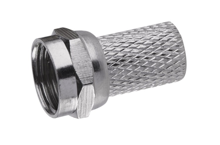 Wtyczka złącza F do przewodu koncentrycznego CB 50,100. Złącze F ma skręcaną wtyczkę.