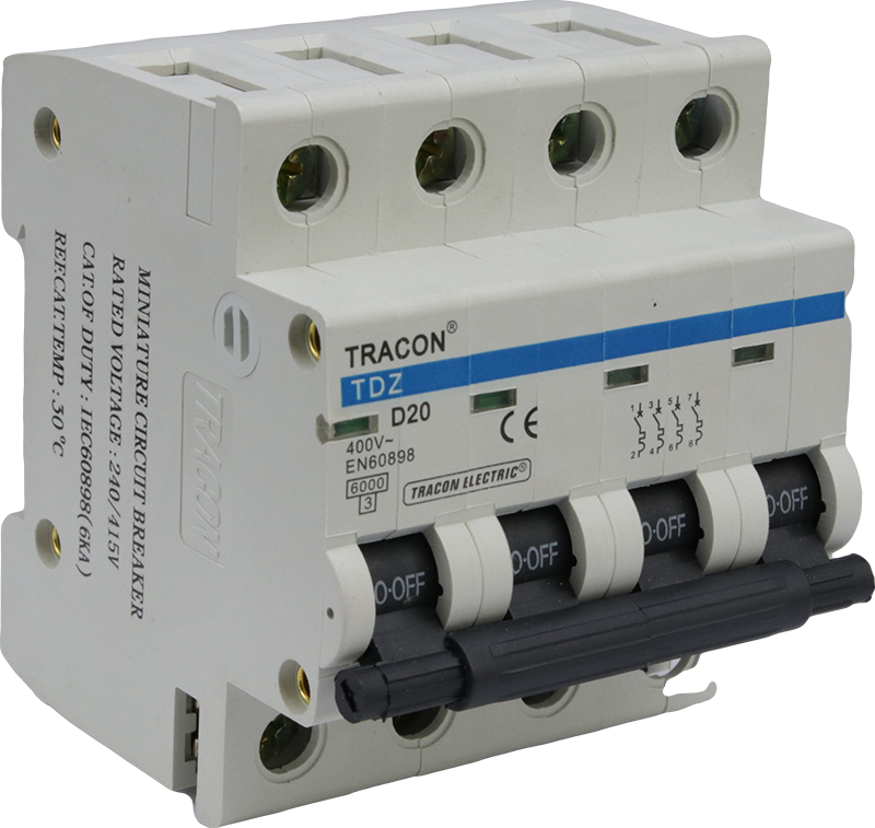 Wyłącznik nadprądowy, 4 pol, charakterystyka D 16A, 6kA TDZ-4D-16 Tracon Electric