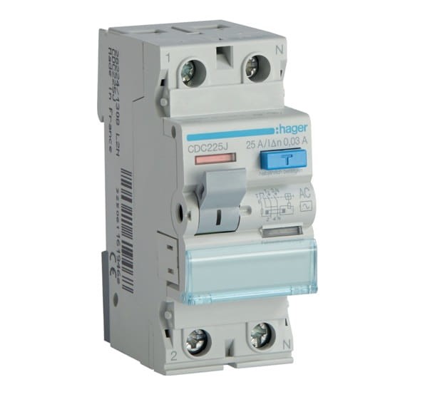 Wyłącznik różnicowoprądowy 1P+N 25A/30mA Typ AC 6kA CDC225J Hager RCCB 25A 30mA różnicówka