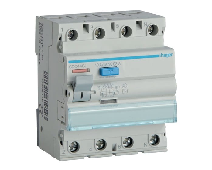 Wyłącznik różnicowoprądowy 4P 40A/30mA Typ AC CDC440J Hager RCCB 40A 30mA różnicówka