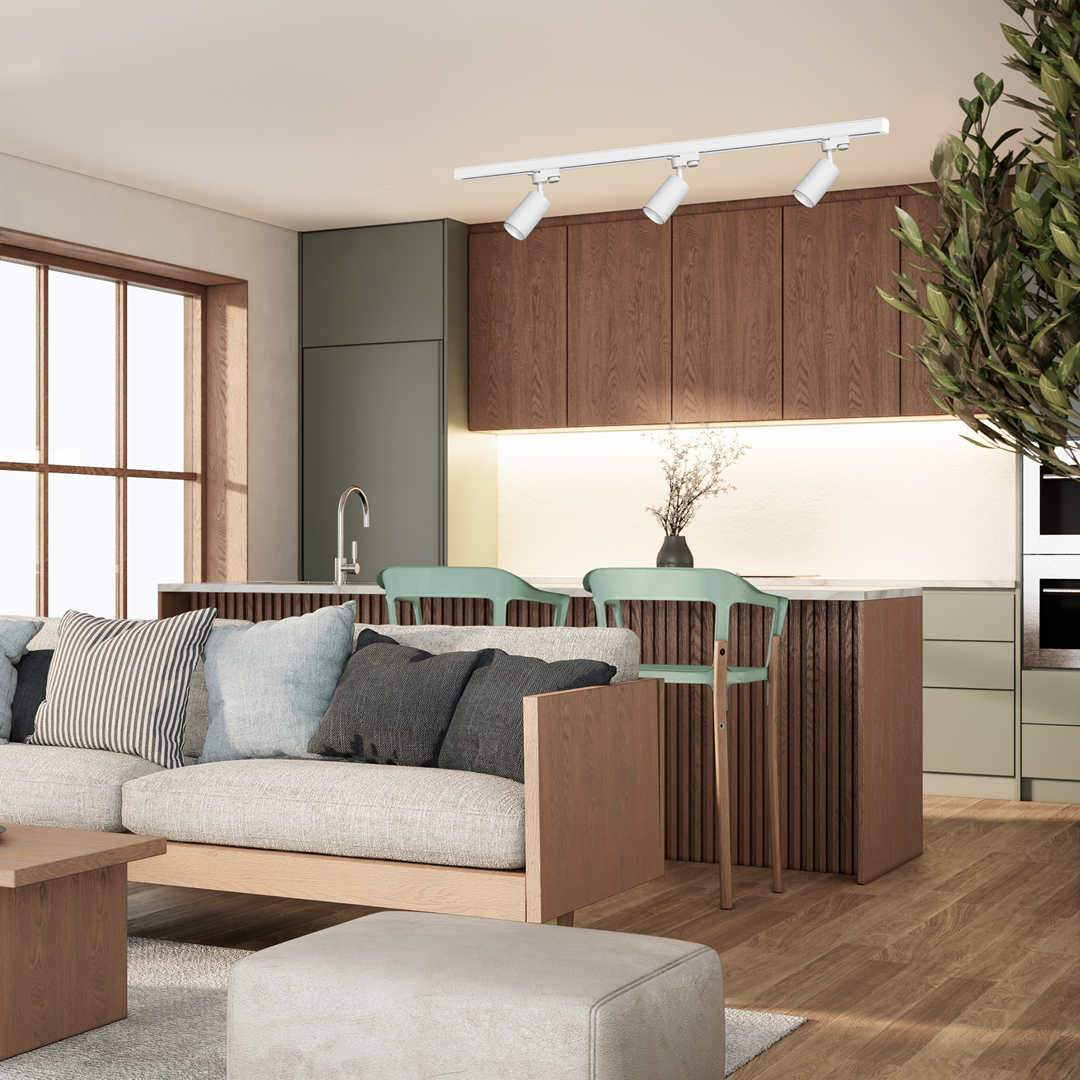 Nowoczesny zestaw oświetleniowy marki Milagro przeznaczony do montażu w systemie szynowym. W skład zestawu wchodzą trzy reflektorki z rodziny Pipe (1xGU10), oraz szynoprzewód 1-obwodowy o długości 1,5m. Rozwiązania tego typu mają szerokie zastosowanie zarówno wewnątrz pomieszczeń mieszkalnych jak i komercyjnych. Reflektorki możemy wpinać w dowolnym miejscu szyny, przesuwać, obracać – dzięki czemu w łatwy sposób skierujemy światło, w wybrany przez nas punkt. Dodatkowym atutem opraw jest wymienne źródło światła, dzięki czemu łatwo dopasujemy odpowiednią barwę światła, a także w razie awarii bez problemu wymienimy żarówkę.