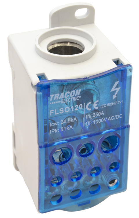 Złączka odgałęźna, otwierana 1×120(95)mm2/5×25(16),4×16(10),2×35(25)mm2, 1000VAC/DC, 250A FLSO120 Tracon Electric