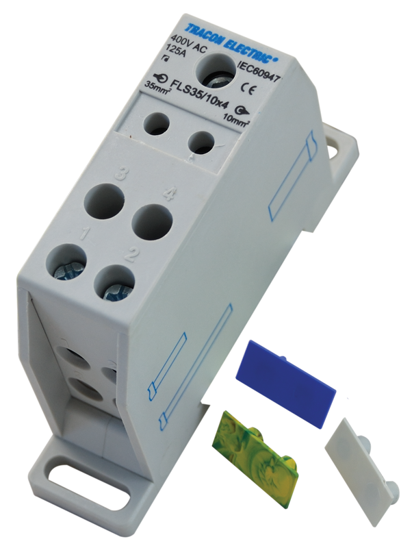 Złączka odgałęźna na szynę 1×35mm2 / 4×10mm2, 400VAC, 125A, MULTICOLOR FLS35/10X4 Tracon Electric