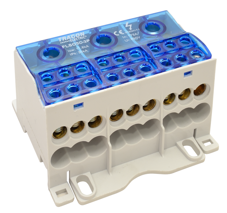 Złączka odgałęźna na szynę otwierana 3×1×50(35)mm2 / 3×6×16(10)mm2, 690VAC/DC, 175 A FLSO50-3P Tracon Electric